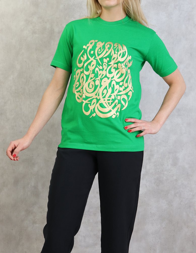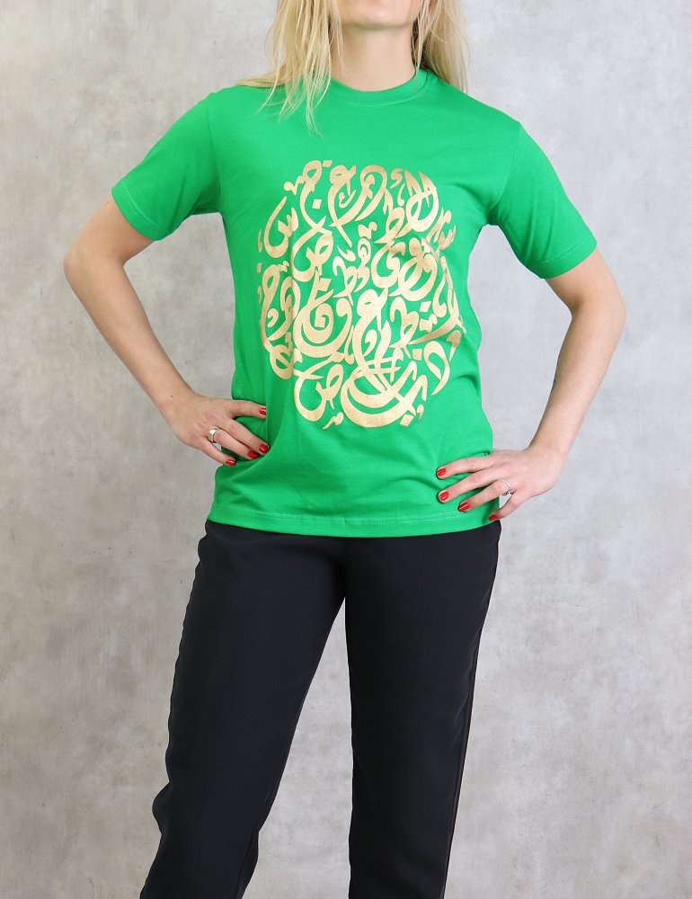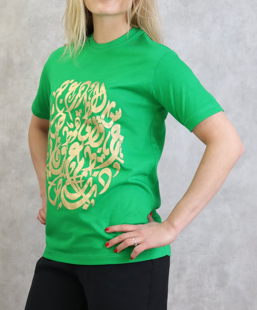 T-shirt mixte 100% coton avec calligraphie arabe dorée - Couleur Vert Vetement & Accessoire