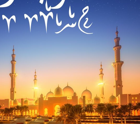 Tableau Mosquée et Coucher de soleil avec calligraphie arabe personnalisable Deco & Cadeau