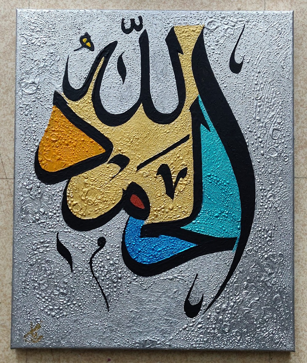 Vous rêvez d'avoir une oeuvre d'art unique chez vous et non pas une copie, votre rêve peut être réalisé grâce à notre artiste peintre calligraphe chevroné. Il pourra vous réaliser un tableau de calligraphie arabe moderne personnalisée en fonction de votre description. Une fois la commande passée vous pourrez vous entretenir avec lui pour lui expliquer votre souhait en détail avant qu'il commence la réalisation de votre toile...