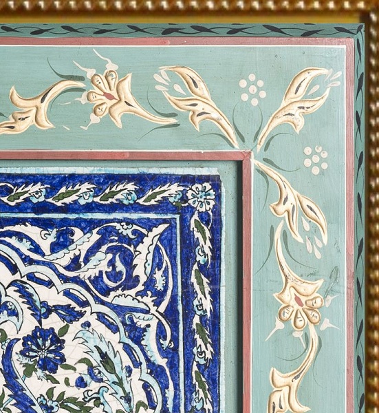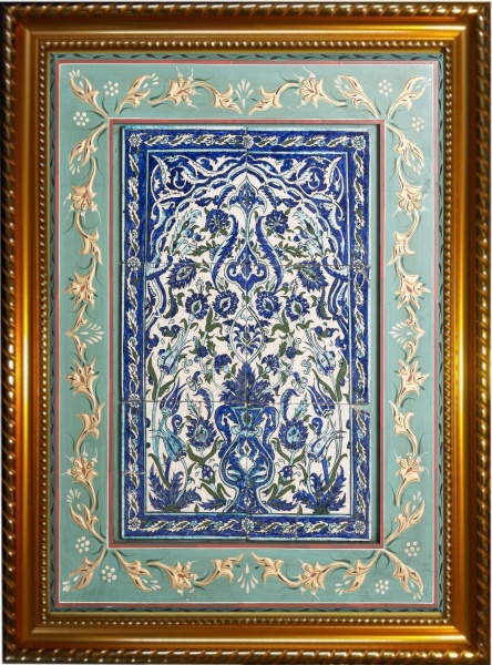Tableau représentatif de l'art islamique (réplique d'une oeuvre d'art unique provenant de musées ou monuments historiques)... Arabesques de fleurs... Les arts de l'Islam dans le monde musulman (de l'Espagne jusqu'à l'Inde et habité par des populations de culture islamique diverses).