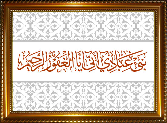 Tableau avec calligraphie "Informe Mes serviteurs que c'est Moi le Pardonneur, le Tres Misericordieux" (S. 15 V.49)