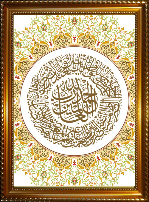 Tableau avec la calligraphie artistique en style Thuluth de Sourate N°1 Al Fâtiha.