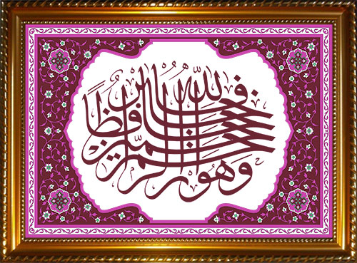 Tableau avec calligraphie du verset coranique "Allah est le meilleur gardien, et Il est Le plus Misericordieux des misericordieux"