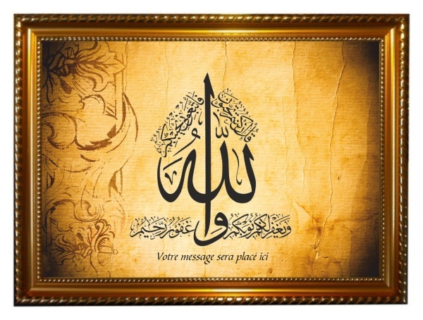 Tableau avec la calligraphie artistique du verset coranique : "Dis: «Si vous aimez vraiment Allah, suivez-moi, Allah vous aimera alors et vous pardonnera vos péchés. Allah est Pardonneur et Miséricordieux." Al-'Imran - v31.