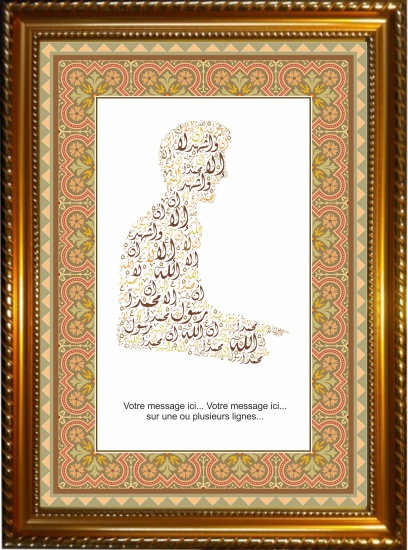 Tableau avec calligraphies de l'attestation de foi sous forme d'une personne qui fait la prière (personnalisable) - REF. 28701 (19.00 €)