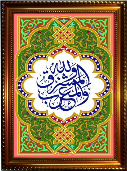Tableau calligraphique du verset coranique : "A Allah seul appartiennent lEst et lOuest" (Al-Baqara - V.115)