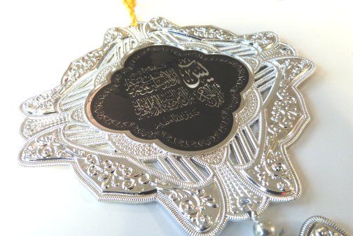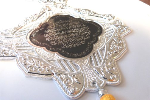 Décoration argentée avec inscriptions Sourates "Al Fatiha", "Al-Ikhlâss" et "Al-Falaq" - REF. 21749 (8.50 €)