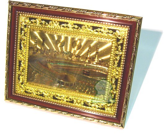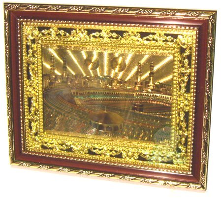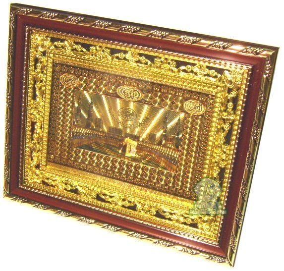 Tableau decoratif en bois dore : La Sainte Mosquee de La Mecque