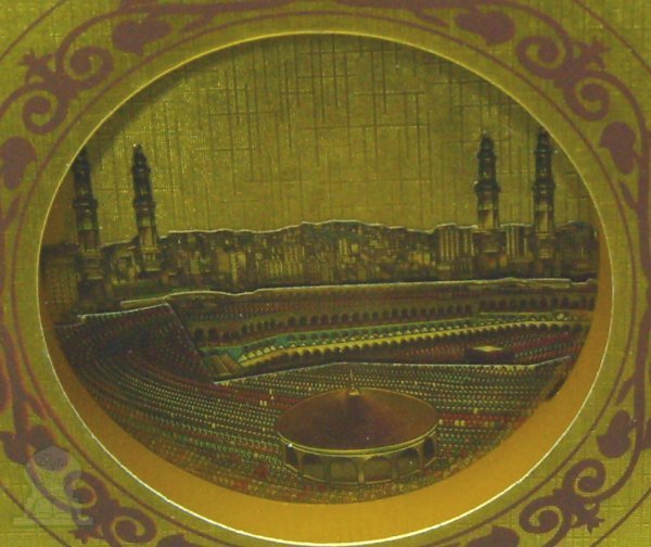 Tableau dore avec effet de profondeur representant La Mosque de La Mecque (Al-Masjid Al-Haram)
