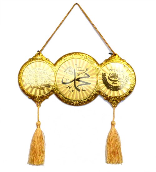 Garniture murale dorée avec Le nom d'ALLAH, le Nom de prophète Mohammed (Saw) et Sourate Al-Ikhlass - REF. 24001 (3.90 €)