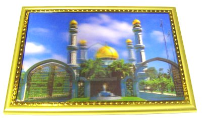 Tableau holographie doré avec une jolie photo de mosquée.