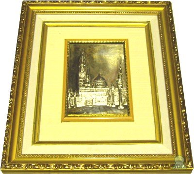 Un très joli tableau décoratif avec l'image en relief de la mosquée de Médine (la mosquée sainte du Prophète SAW) sur une plaque argentée.