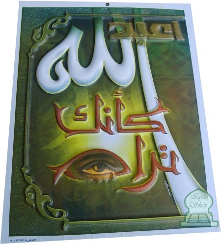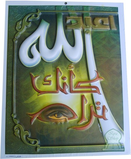 Tableau décoratif en plastique moulé représentant le verset coranique "Adore Allah comme si tu le voyais."