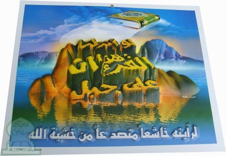 Tableau décoratif en plastique moulé représentant le verset coranique "Si Nous avions fait descendre ce Coran sur une montagne, tu l'aurais vu s'humilier et se fendre par crainte d'Allah."