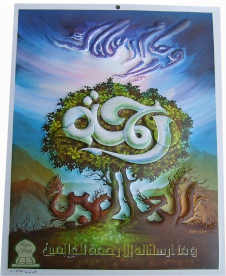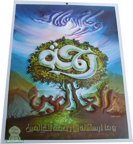 Tableau décoratif en plastique moulé avec reliefs représentant le verset coranique 107 de la Sourate 21 - Alanbia - Les Prophètes : "Nous ne t'avons envoyé qu'en miséricorde pour l'humanité"