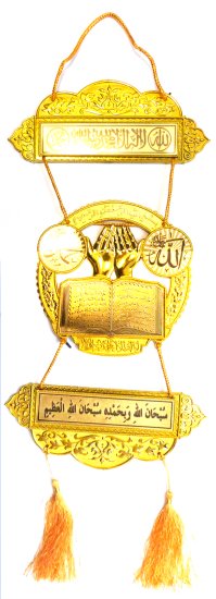 Tableau pendentif dore avec inscriptions islamiques et coraniques