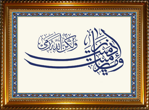 Tableau personnalisable avec la calligraphie de Sourate N° 8 Al-Anfâl - Verset 17 : "Et lorsque tu lançais (une poignée de terre), ce n'est pas toi qui lançais : mais c'est Allah qui lançait"