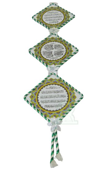 Tableaux décoratifs artisanaux suspendus en forme de losange avec versets coraniques - REF. 16266 (8.00 €)