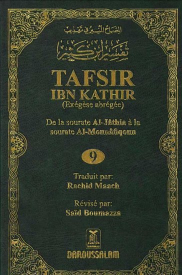 Tafsir Ibn Kathir (Exégèse abrégée) - Volume 9 : De la sourate Al-Jâthia à la sourate Al-Mounâfiquoun - REF. 10582 (18.00 €)