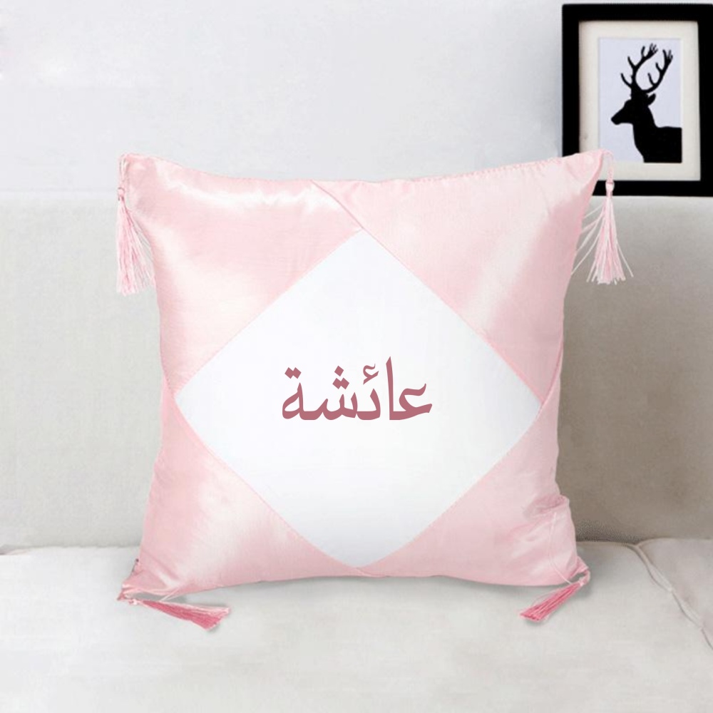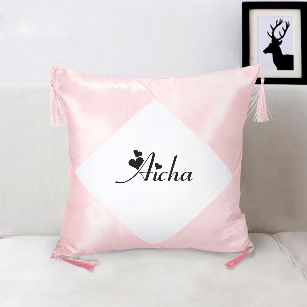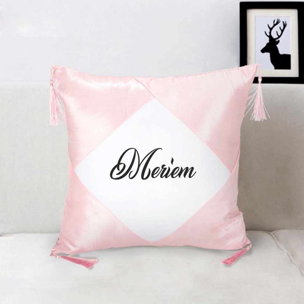 Taie d'oreiller satinee avec prenom ou message personnalise pour offrir (Idee cadeau) - Couleur rose et blanc