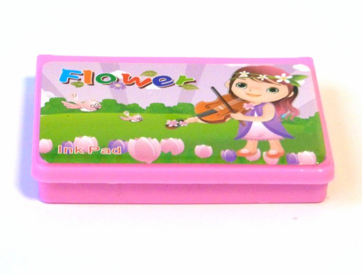 Tampon encreur rouge (10 x 7 cm) à utiliser par les enfants ou les professeurs à l'école.
