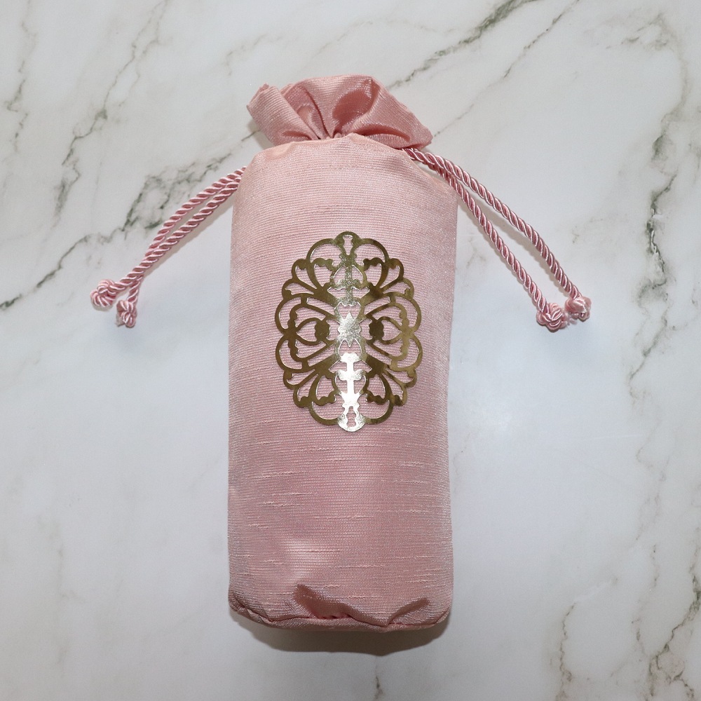 Tapis avec son étui cylindrique décoré de plaque métallique dorée - Couleur Rose clair Deco & Cadeau