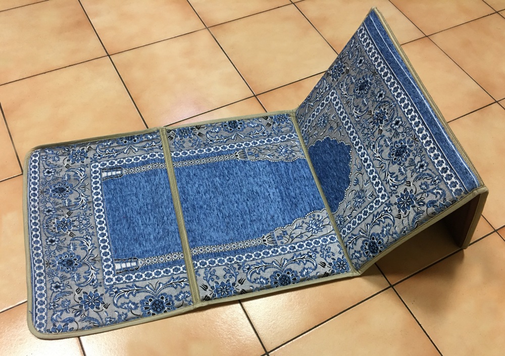 Tapis de prière pliable ultra confortable avec adossoir intégré (dossier - chaise - support pour le dos pour s'adosser) avec sa sacoche - Couleur Bleu clair - REF. 39530 (24.90 €)