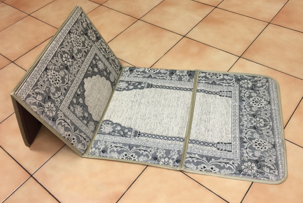 Tapis de prière pliable ultra confortable avec adossoir intégré (dossier - chaise - support pour le dos pour s'adosser) avec sa sacoche - Couleur Grise (Gris argenté) - REF. 39578 (24.90 €)