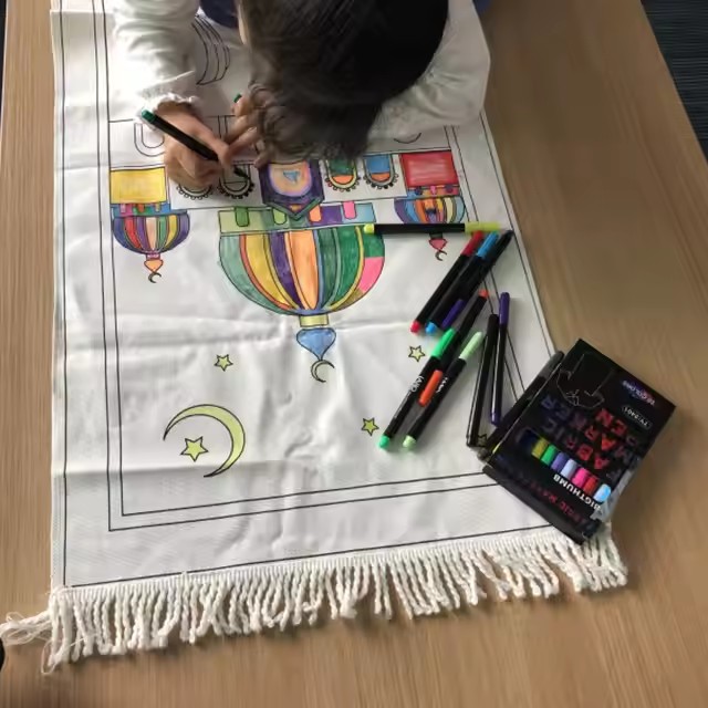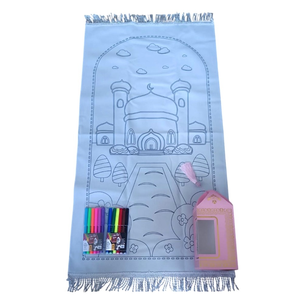 Tapis de priere a colorer (coloriage) avec feutres en couleur pour enfant musulman - Coffret bleu (garcon) ou rose (fille)