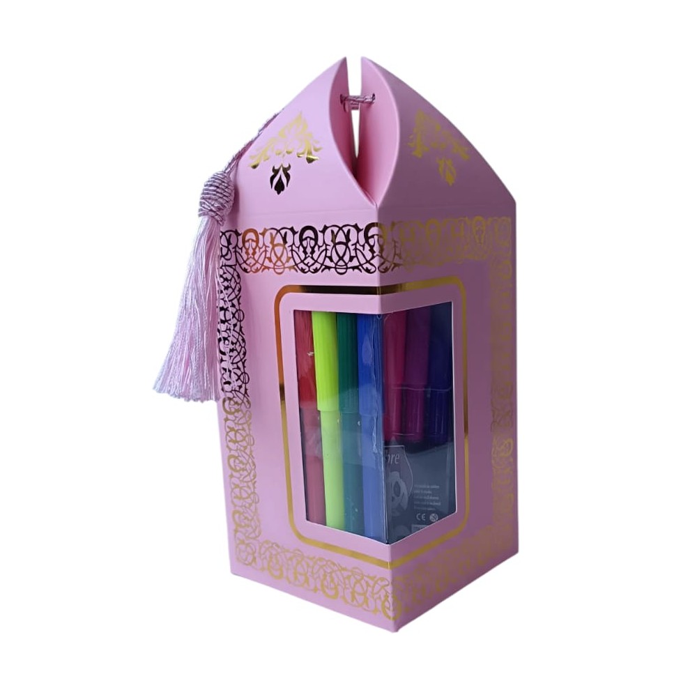 Coffret cadeau pour fille musulmane : Tapis de prière avec 12 feutres de coloriage textile - Boite de couleur rose - REF. 41005 (11.90 €)