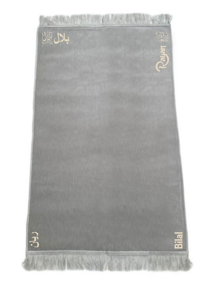 Tapis de prière adulte en velours couleur gris uni sans motifs personnalisé avec le prénom de votre choix - REF. 39142 (16.90 €)
