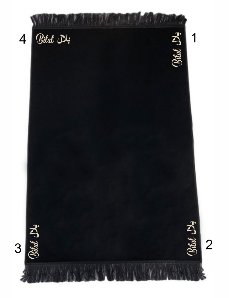 Tapis de prière adulte en velours couleur noir uni sans motifs personnalisé avec le prénom de votre choix - REF. 39139 (16.90 €)