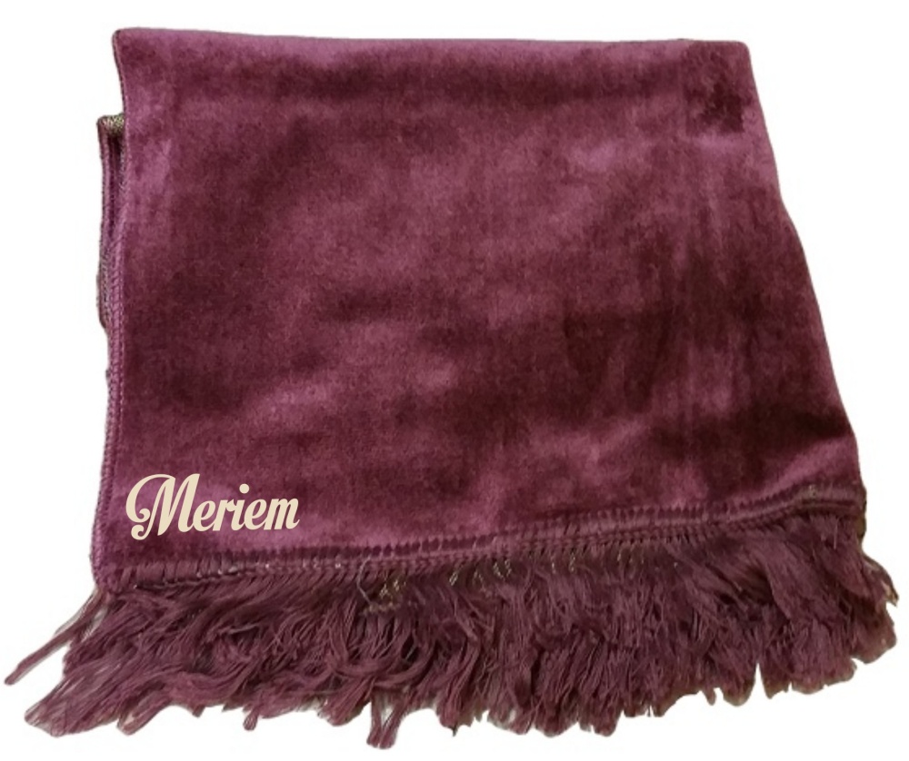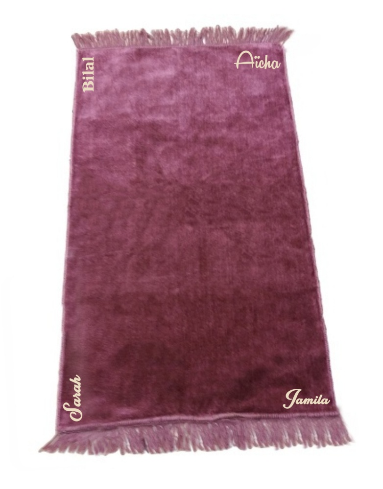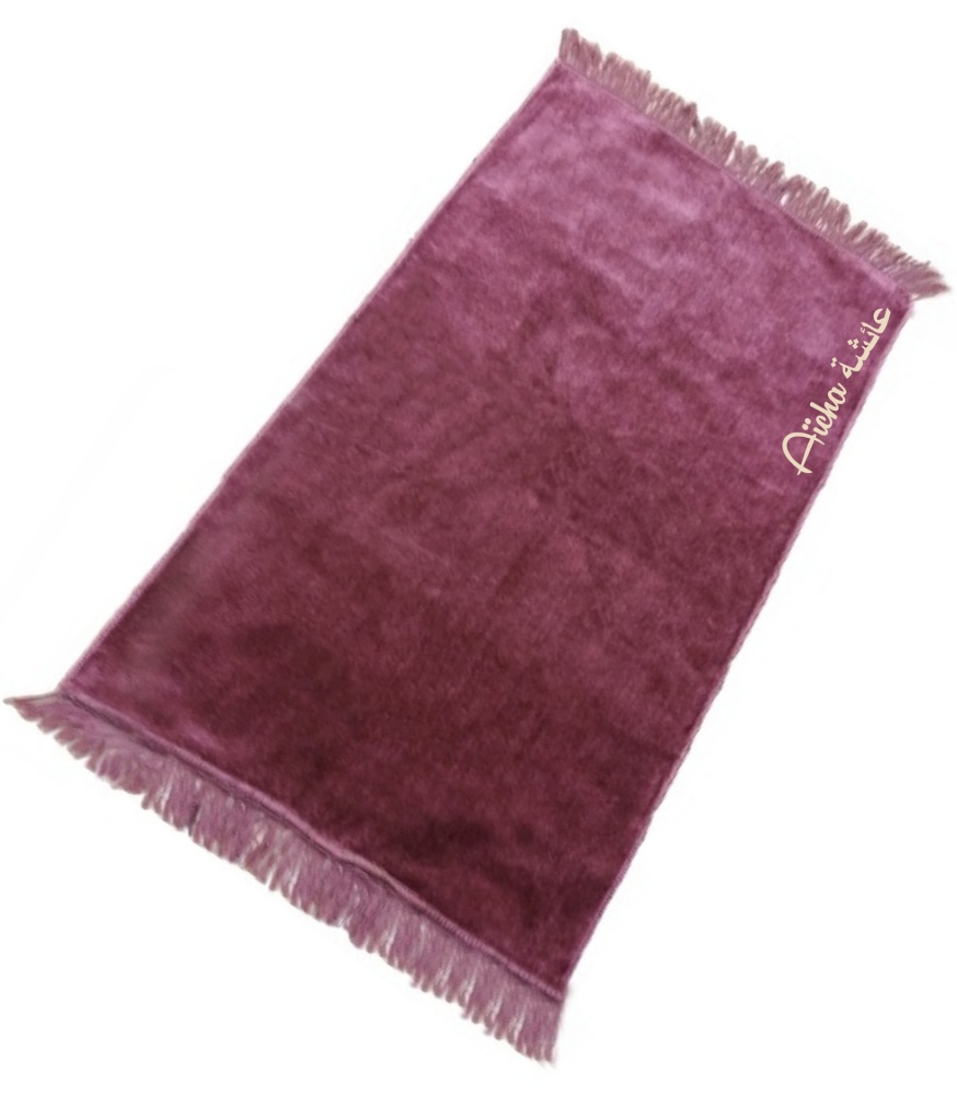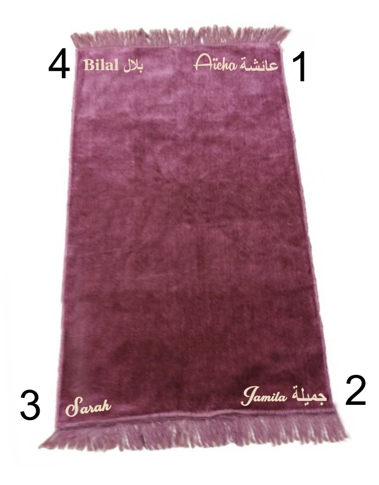 Tapis de prière personnalisé avec un prénom écrit en français ou en "français+arabe" ou en arabe seulement, une idée cadeau pour faire plaisir à offrir ou à s'offrir à soi-même...