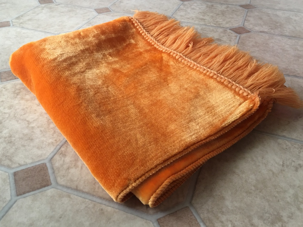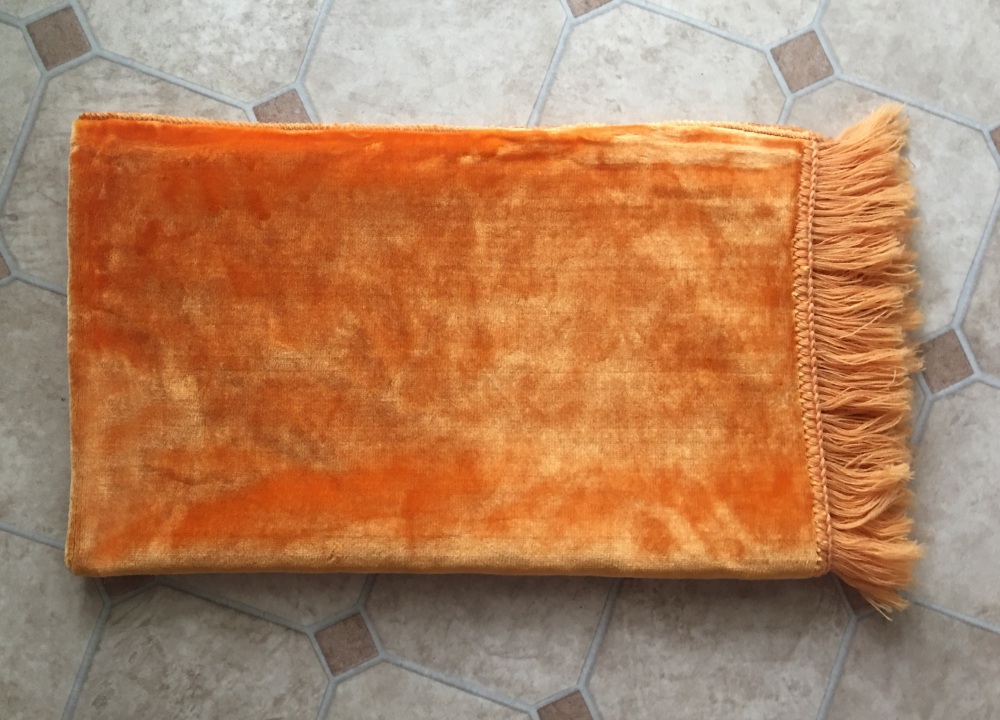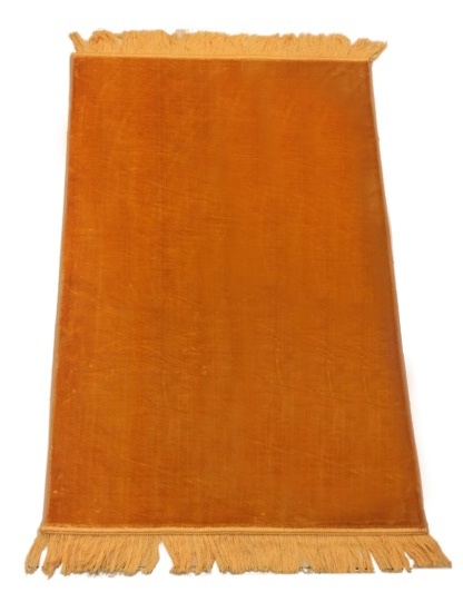 Tapis de prière (salât) de couleur jaune or, de type velours ultra-doux au toucher... Sans aucun motif ni dessin, pour une concentration maximale durant la prière.