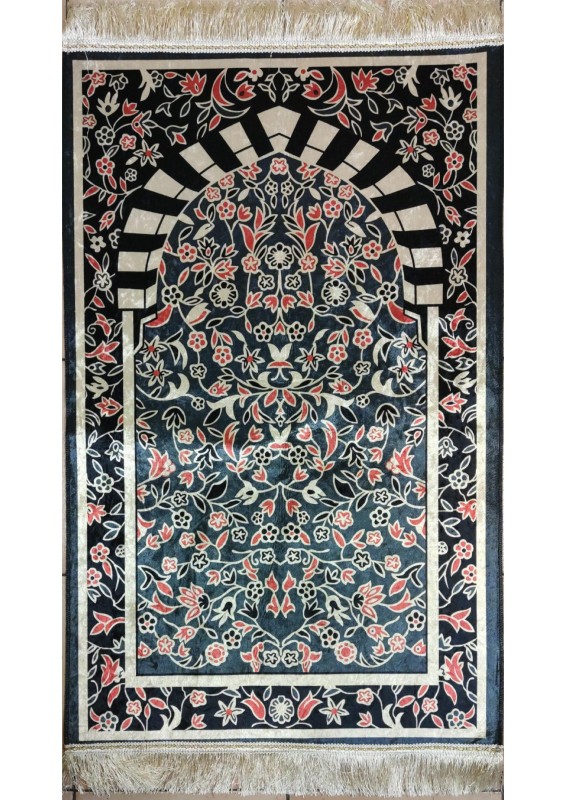 Tapis de priere de luxe anti-derapant de couleur Noir avec motifs (70 x 115 cm)