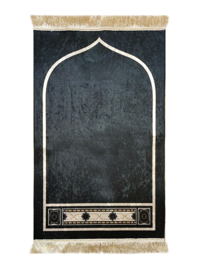 Tapis de priere de luxe anti-derapant de couleur Noir avec motifs (70 x 115 cm)