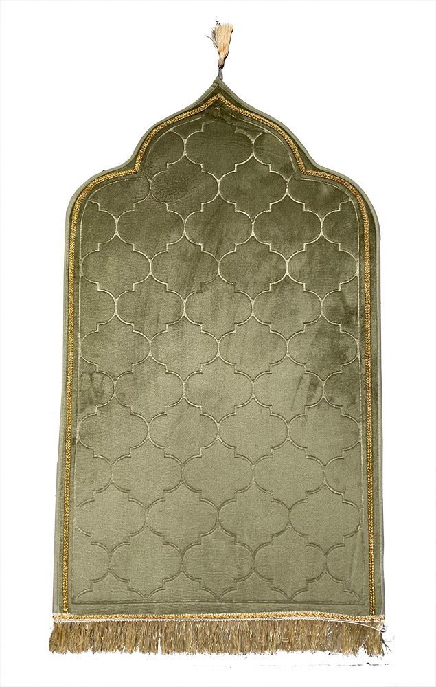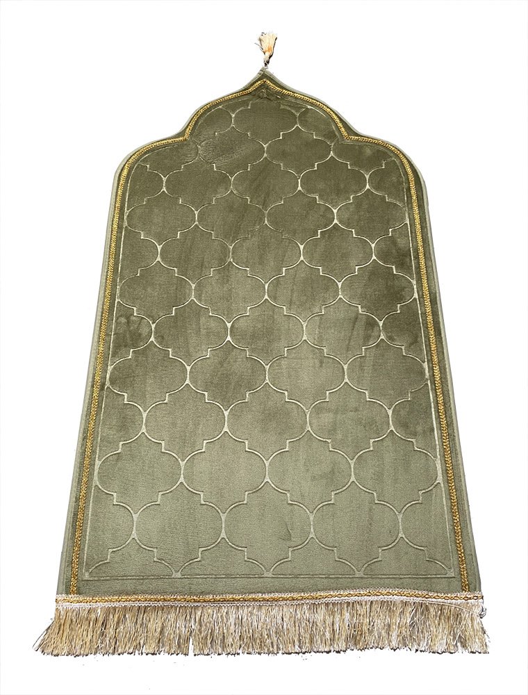 Tapis de prière de luxe doré pour adulte sous forme de mosquée (Mihrab) motif mosaïque - Couleur kaki - REF. 39560 (14.90 €)