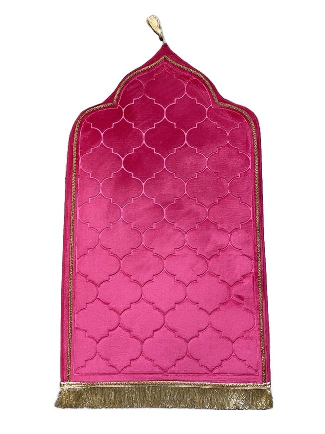 Tapis de prière de luxe doré pour adulte sous forme de mosquée (Mihrab) motif mosaïque - Couleur rose fushia Deco & Cadeau