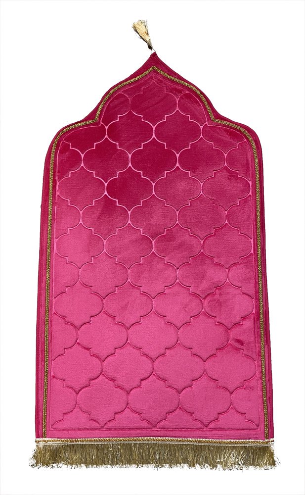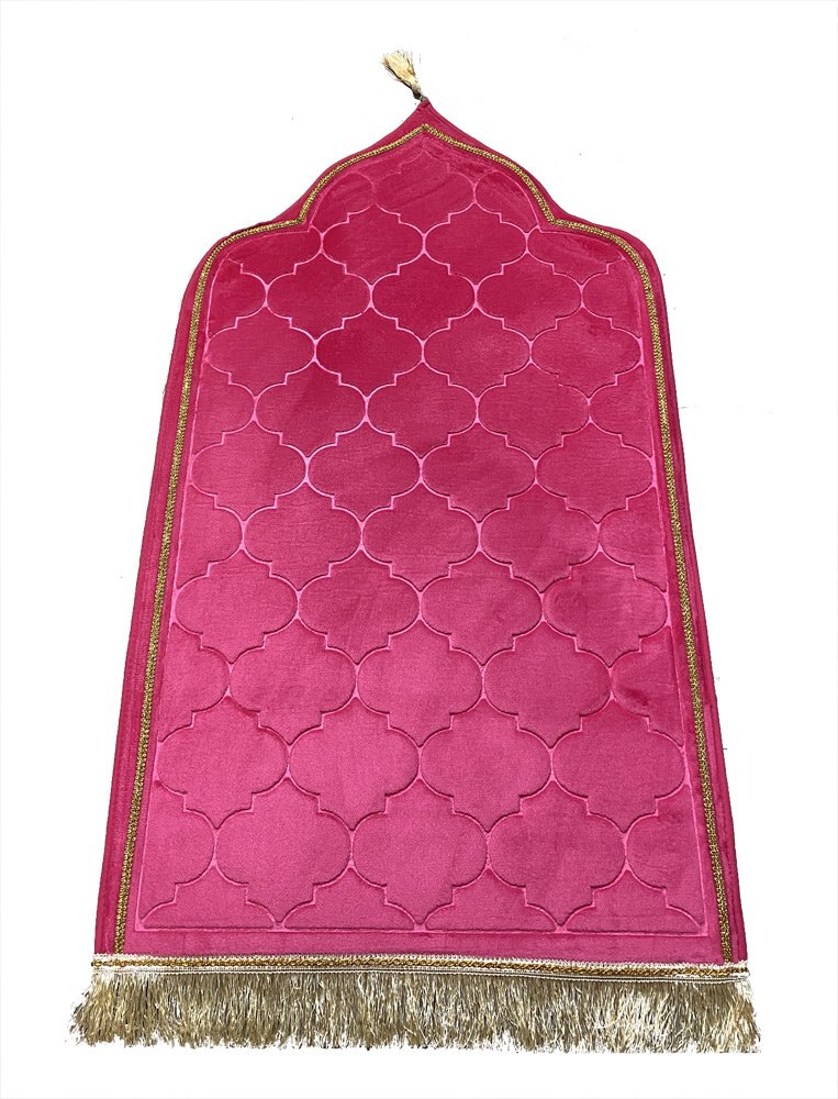 Tapis de prière de luxe doré pour adulte sous forme de mosquée (Mihrab) motif mosaïque - Couleur rose fushia - REF. 39553 (14.90 €)
