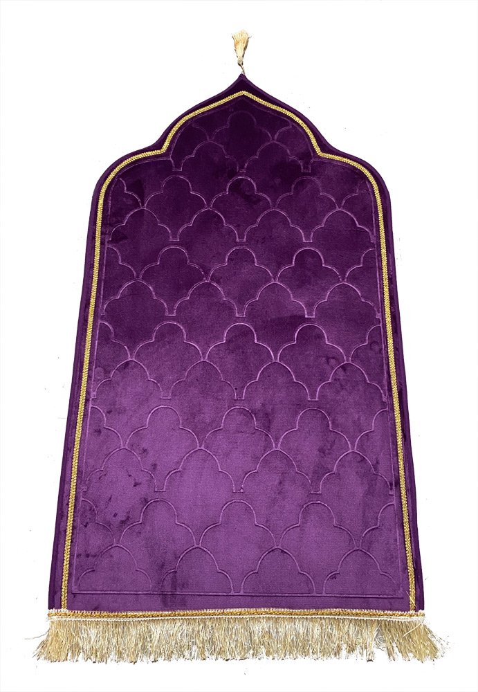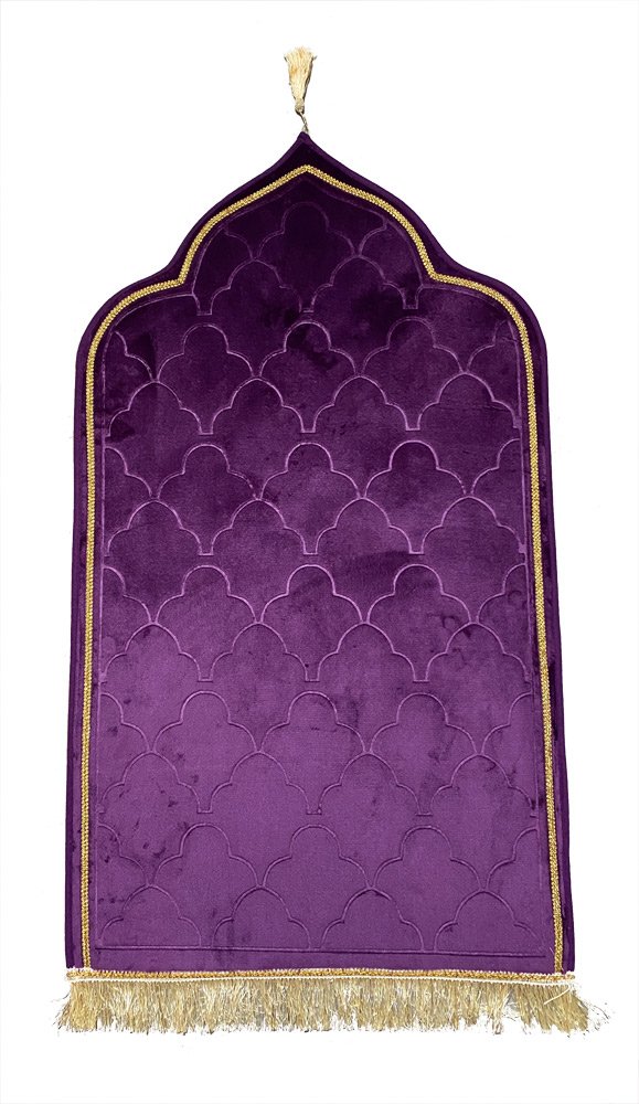 Tapis de prière de luxe doré pour adulte sous forme de mosquée (Mihrab) motif mosaïque - Couleur mauve - REF. 72 (14.90 €)