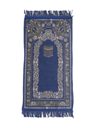 Tapis prière de luxe doré pour adulte sous forme de mosquée (Mihrab) motif mosaïque - Couleur bleu Foncé - REF. 39556 (14.90 €)