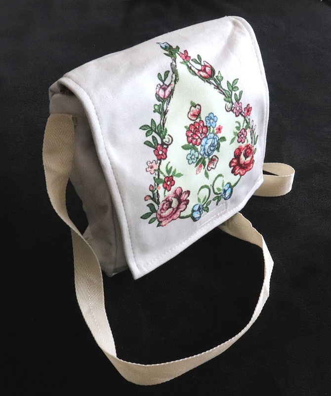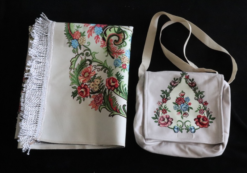 Très beau tapis à transporter dans sa sacoche assortie. Le tapis a des jolis motifs fleuris assortis à la sacoche.