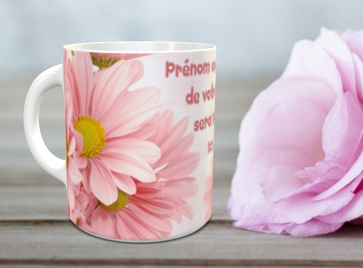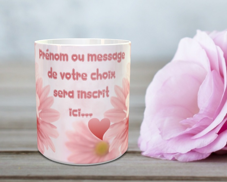 Tasse personnalisee avec message ou prenom de votre choix (Mug Fleurs Rose)
