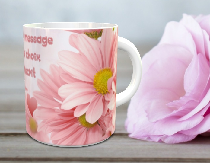 Mug Personnalisé avec message de votre choix (coeurs et fleurs) - REF. 21844 (9.90 €)