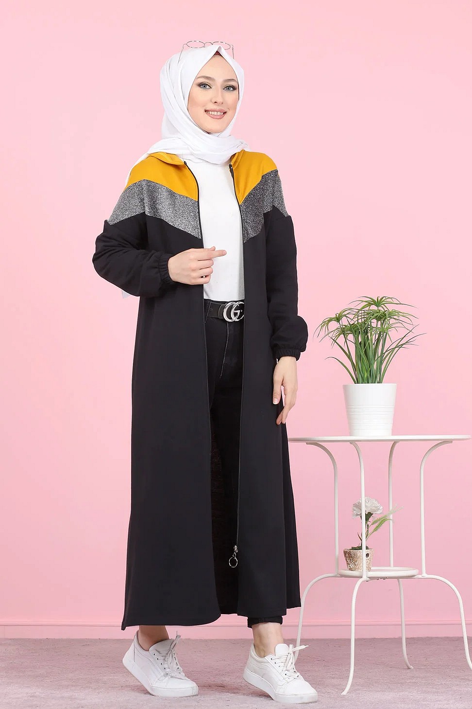 Tenue decontractee de type Sportswear - Vetement islamique mastour pour femme musulmane - Couleur noir et moutarde