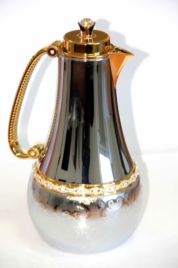 Thermos 1L métallique de qualité supérieure (argentée avec parties dorées) - REF. 24843 (48.00 €)