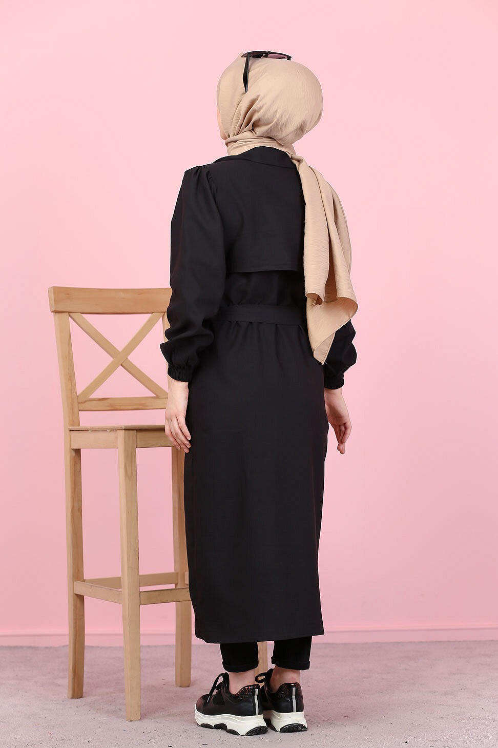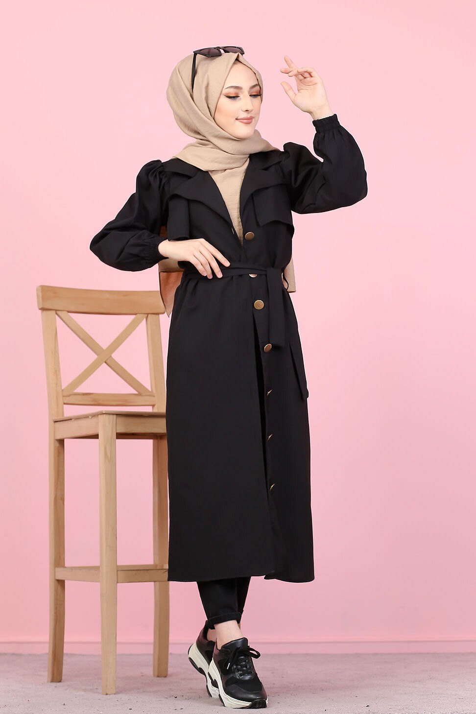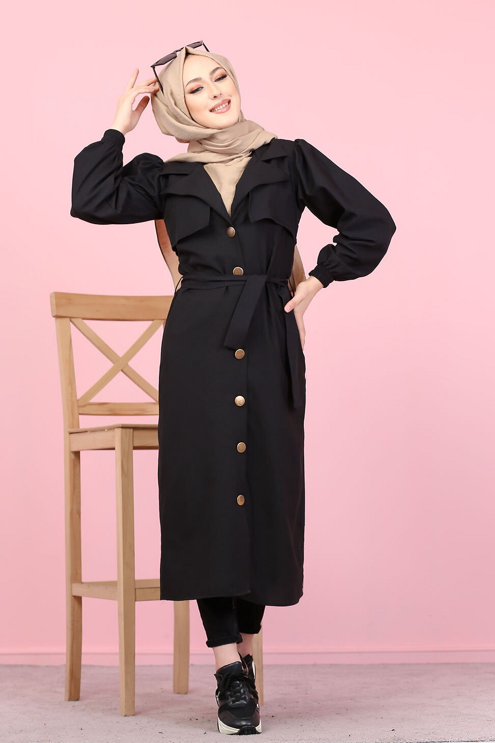 Trench coat Long pour femme (Vetement Mode Musulmane automne Hiver) - Couleur noir