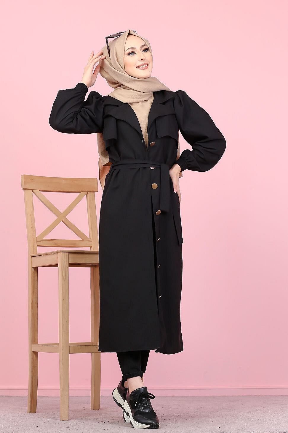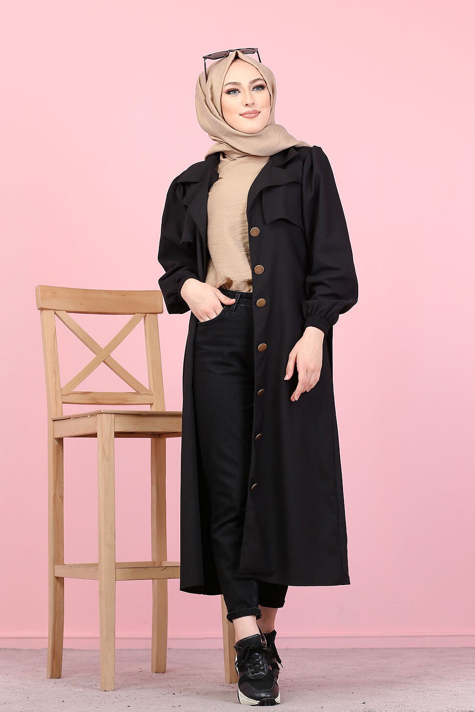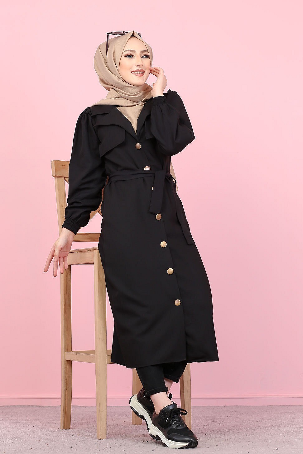 Trench coat Long pour femme (Vetement Mode Musulmane automne Hiver) - Couleur noir