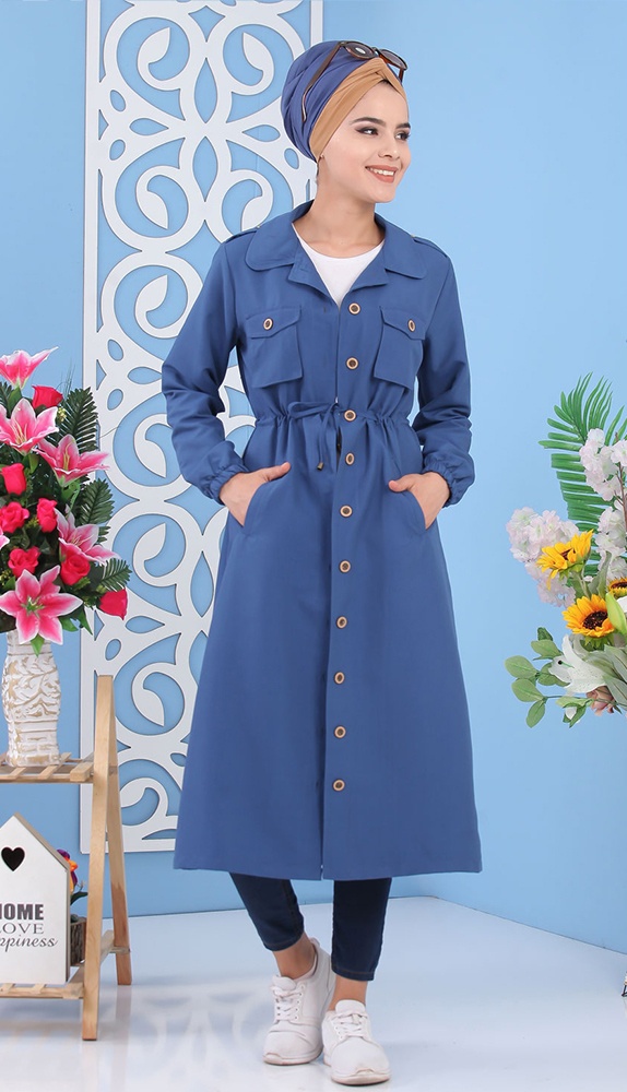 Trench-coat de ville et Robe boutonnée mi-longue pour femme - Couleur bleu Vetement & Accessoire