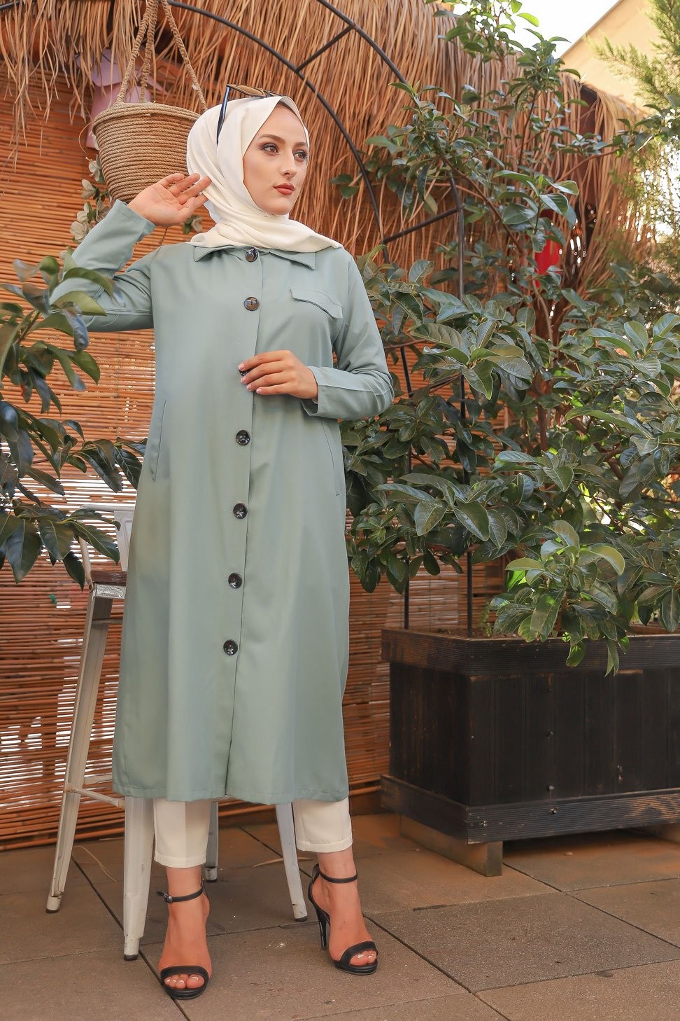 Trench femme - Veste longue (Vetement hijab pour musulmane) - Couleur menthe